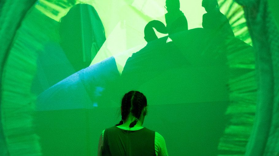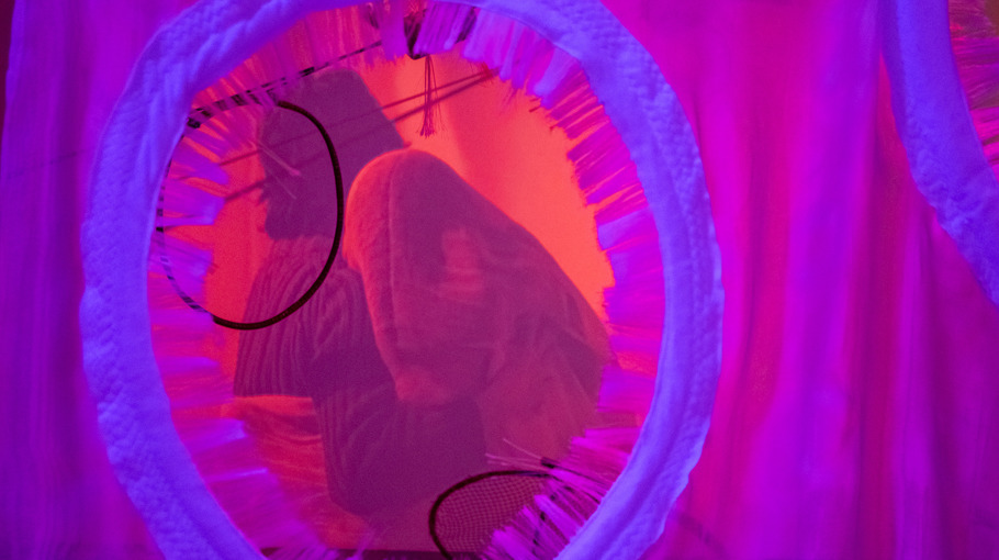 Att röra, beröra och göra rörelse. Inuti och runt om. En sinnlig utställning - ett tillfälle för alla att utmanas och stimuleras oavsett nivå på finmotorik och uppmärksamhet.