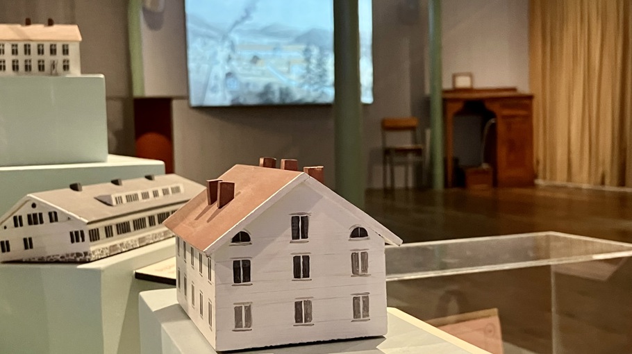 Rydals museums nya basutställningen TEXTIL MARK. Med multimediateknik presenteras historien om Rydal och textilbygden i Mark.